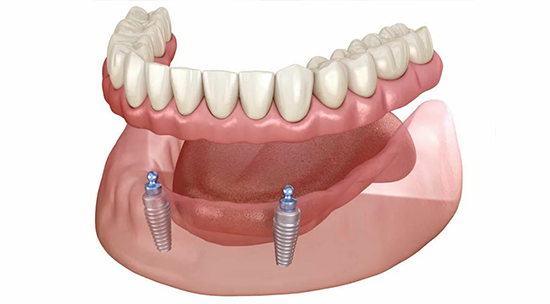 4 імплантати, фіксуючі елементи та незнімний протез.